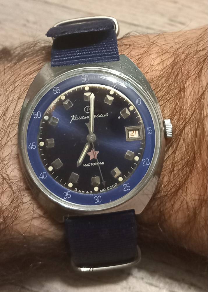 Tre orologi fantastici. Tutta la storia è segnale di in momento storico in cui la moda aveva spazzato via l'orologeria. Certamente, sul lungo termine, un oggetto di moda, di plastica, deperibile e rapidamente soppiantabile da qualsiasi altro gingillo analogo dall'apparenza più allineata con le mode susseguenti, è destinato a vedere annullato il suo valore. La stessa cosa non può avvenire con orologi come questi che hanno un valore intrinseco: buoni calibri, materiali durevoli, linee senza tempo. Per finire: credo che la macchia sul quadrante sia una bruciatura da radio. |