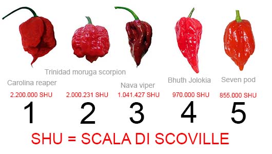 Mi piscio... ![]() ....................... (IMG:https://i.postimg.cc/59P2ZLf9/cinque-peper...ti-al-mondo.jpg) nicola1960 secondo la scala di Scoville, che misura la piccantezza dei peperoncini, al momento potrei pensare di importare illegalmente il Carolina Reaper per farne un'estrazione e ustionarmi le cornee definitivamente. Un amico coltiva sul suo bel terrazzo di Marechiaro il secondo da sinistra, nel caso volessi farne degli impacchi oculari. |