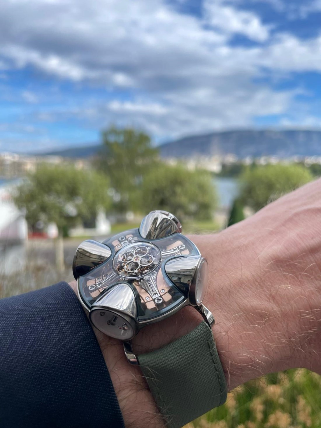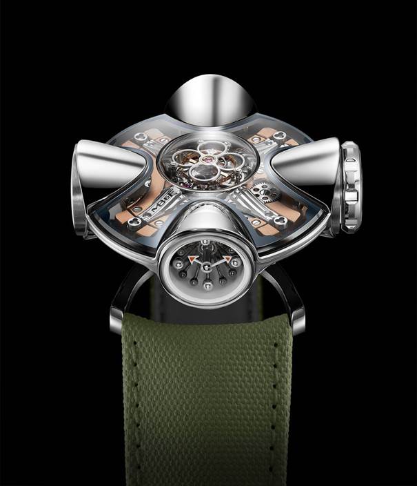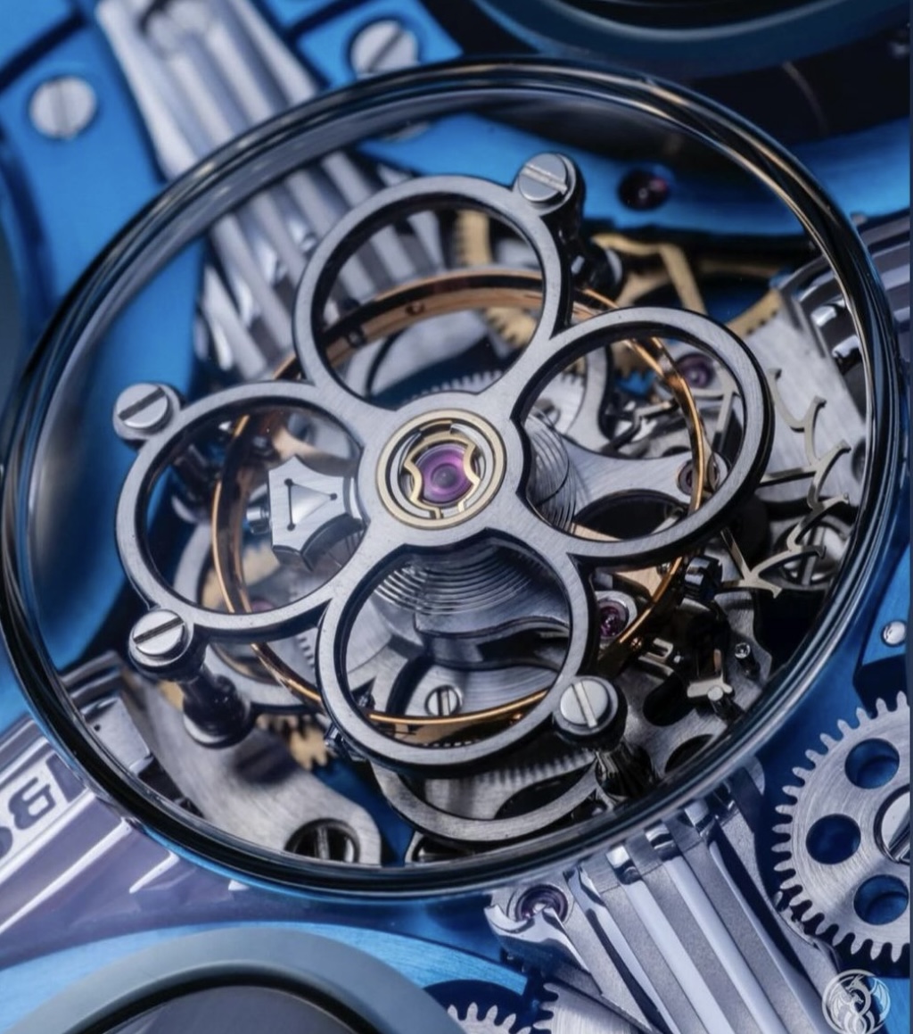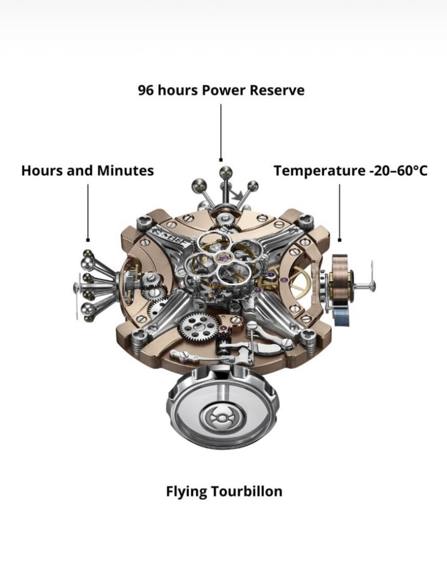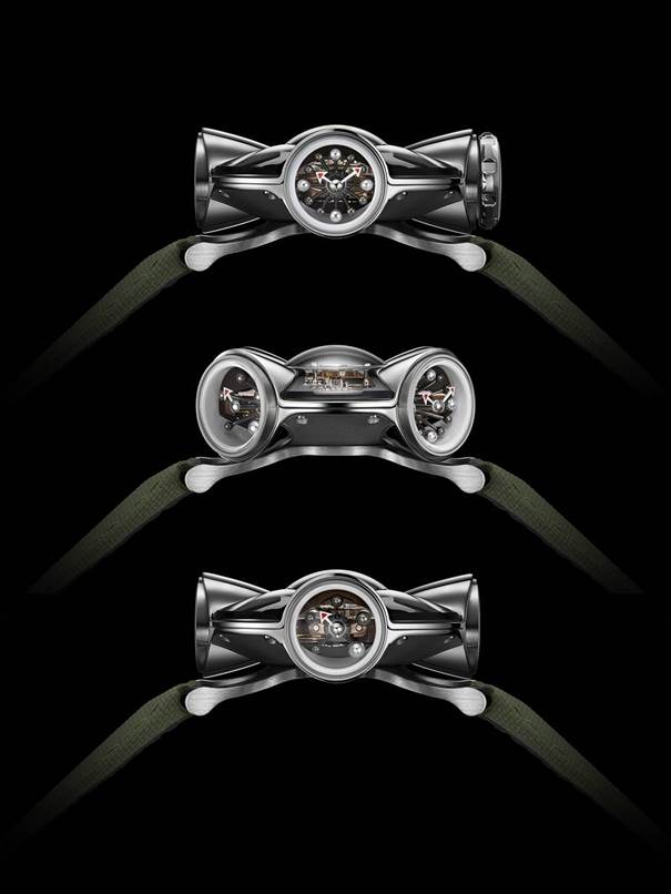 ![]() ![]() ![]() ![]() ![]() ![]() ![]() ![]() ![]() Max Büsser si interessò all'architettura degli anni '60 e alla cosiddetta tendenza umanista: un progetto incentrato sul corpo umano e sulla portata sferica della visione percepita dall'occhio umano. La HM11 Architect ha la forma di una casa con quattro stanze e un atrio centrale. Una cassa rotante altamente complessa composta da quattro baccelli e un nucleo centrale, con il cuore pulsante posizionati proprio al centro. L'atrio centrale è come un incrocio di corridoi, distribuendo potere e funzioni alle quattro stanze, ciascuna con la propria funzione. Una cupola in cristallo di zaffiro funge da tetto mentre i coni di titanio fungono da pareti per i baccelli, ciascuno aperto sul mondo con una finestra laterale. L'intera cassa ruota di 360 gradi, il che significa che qualsiasi indicazione può essere posizionata; la carica del movimento avviene ruotando l'intera cassa in senso orario. Quattro elementi laterali: Il primo: la corona di carica - poi la "stanza del tempo", che sarà prevalentemente rivolta verso chi indossa l'orologio, indica le ore e i minuti, con sfere montate su asta che fungono da indici, utilizzando sfere di alluminio lucidato più grandi e più leggere per ogni quarto e sfere di titanio lucidato più piccole e più scure per il resto. frecce con la punta rossa indicano le ore e i minuti. - la successiva (90° a sinistra), è dedicata alla riserva di carica, sempre con sfere montate su aste e una freccia con la punta rossa. - a seguire un termometro meccanico: funziona senza alcun apporto di energia esterna ed è disponibile con varianti di visualizzazione Celsius o Fahrenheit. Tutte le stanze periferiche sono circondate da pareti esterne in titanio lucido di grado 5, e l'atrio centrale, con un tourbillon volante al centro, è aperto alla luce naturale con il suo vetro zaffiro. Anche la corona, dal grande diametro di 10 mm, è realizzata in zaffiro e consente una visione senza ostacoli direttamente nel movimento. Il movimento ha la forma di una X, con il tourbillon volante (ad un minuto - 2,5 Hz) che batte al centro; incorpora (il movimento) un sistema di ammortizzazione completo costituito da quattro molle di sospensione ad alta tensione che si trovano tra il movimento stesso e la minuscola cassa; disponibile con rivestimento in PVD blu o con rivestimento in PVD oro. Cinturino in caucciù – bianco per il modello blu e verde kaki per il modello in oro rosso – chiuso da una fibbia ad ardiglione in titanio Limitato a 25 esemplari per colore. (fonte"Monochrome") Edited by Legolandia - 15/11/2023, 19:00 |
