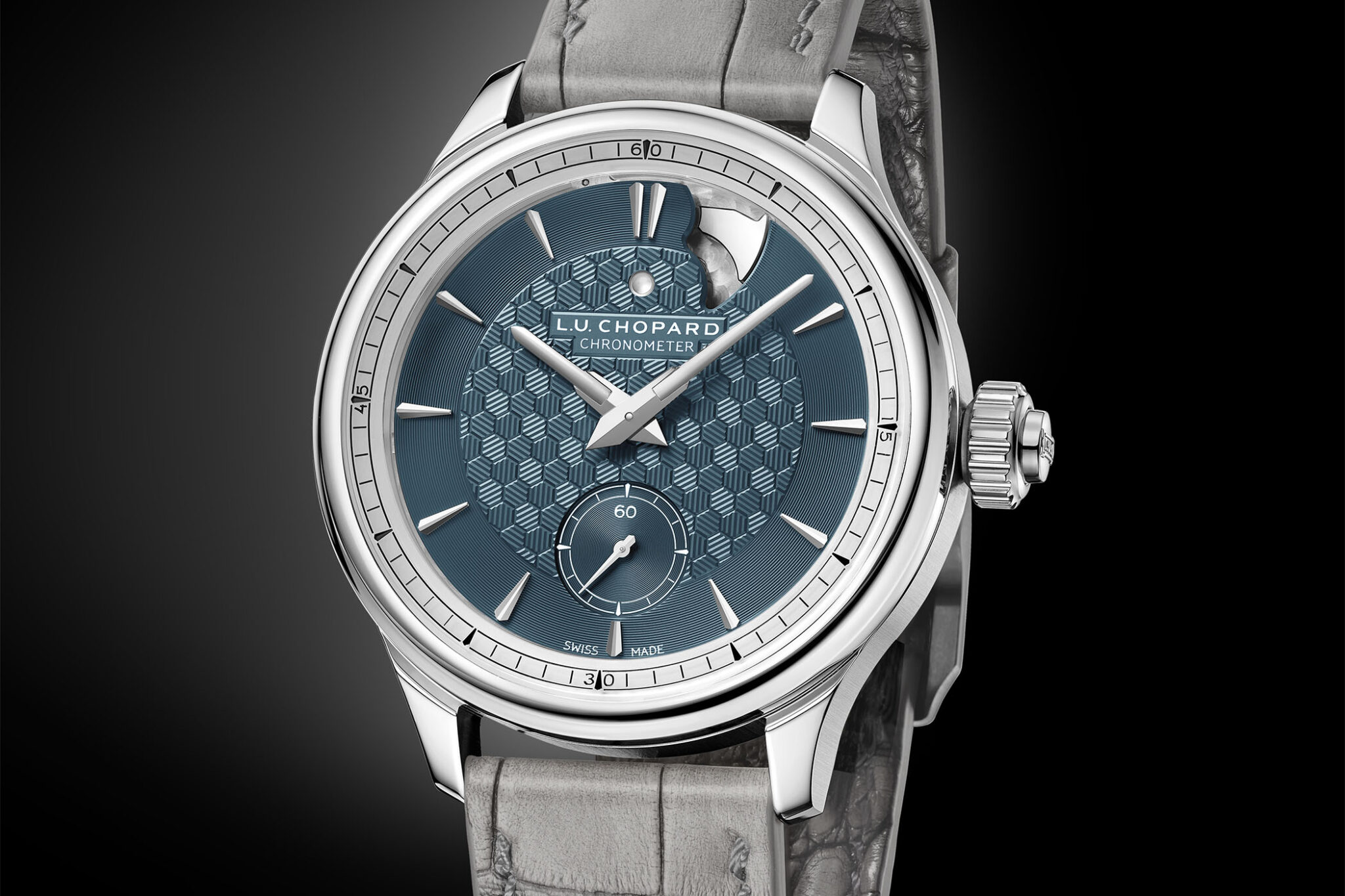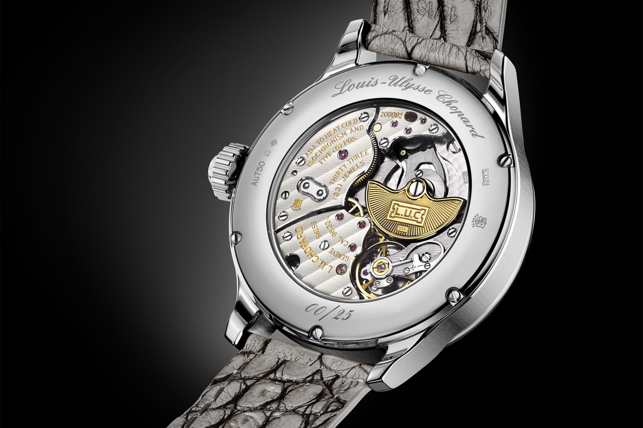 ![]() ![]() Cassa in oro bianco, diametro 43,2 per 9,13 di spessore, oblò ad h 9, impermeabile a 30 m Quadrante in otttone sabbiato, componenti del movimento sabbiati e neri Movimento calibro FB-SPC, a carica manuale, 21.600 altrenanze/ora, 72 ore di riserva di carica, stop-second, 230 componenti, certificazione COSC, spirale cilindrica Cinturino in alligatore, fibbia in oro (fonte"Monochrome") |